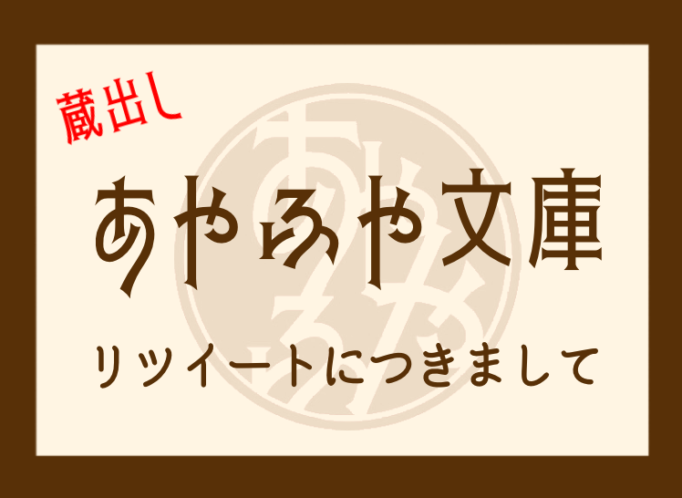 また あやふや文庫は、あやふやな人が日常生活の合間で運営をしているため、誤字脱字をはじめとする色々な不手際があります。どうかあたたかい目でご覧になっていただけますと幸いです。